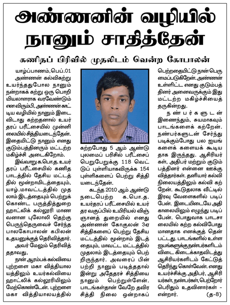 | GCE A/L 2012 Results | Interview from Balagobalan Kabilan |